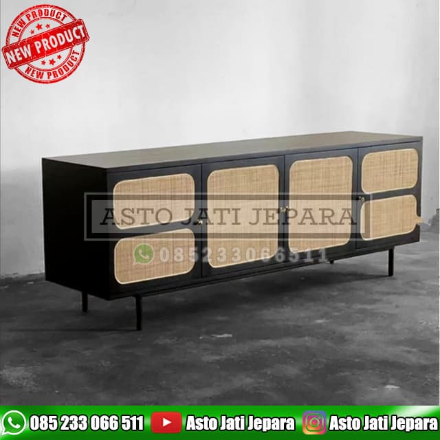 Bufet Tv Jati Minimalis Blackid Bahan Kayu Jati Kode ASTO – 542