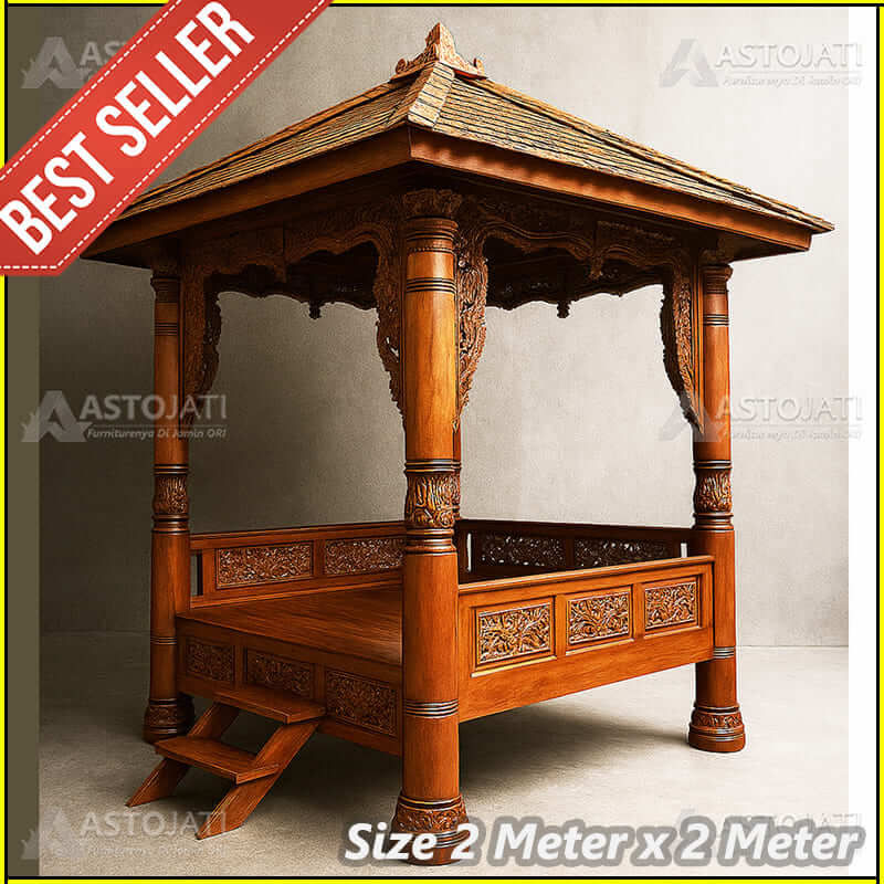 Gazebo Ukir Jati Klewer Jawa Ukuran 2 Meter x 2 Meter
